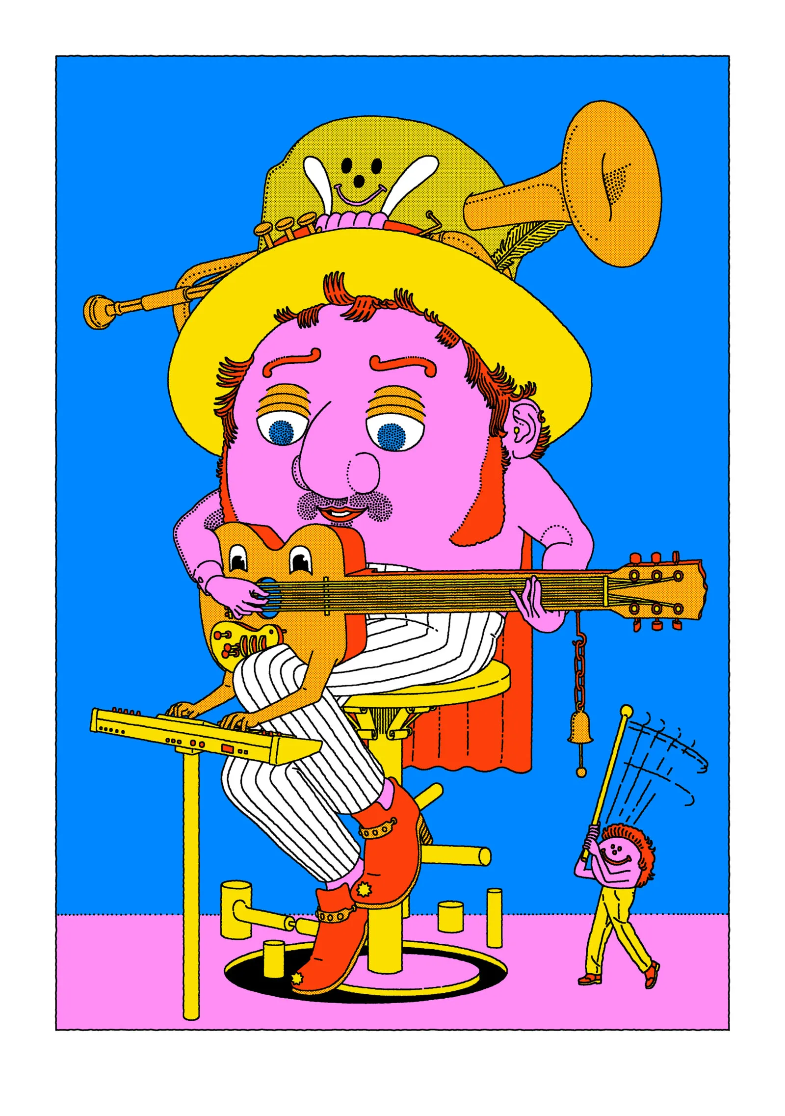 Illustrator Jim Stoten has always pushed boundaries when it came to exploring different ways of mixing painting, illustration, animation, collage, music and film. Creator of the iconic Mr. Tweed and his extravagant adventures, illustrator of a series of picture books, designer of posters, albums and covers, Jim Stoten is a master at blending genres and disciplines. He draws all the time. And when he is not drawing, he is doing something else.