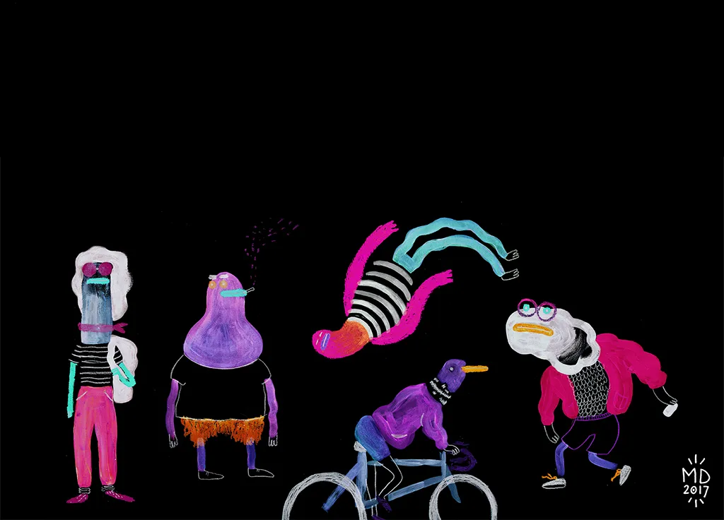 Mirjam Debets is an animation director, VJ and illustrator, based in Amsterdam. Her work stretches in every direction, from music videos to surface design, but is connected through bold colors and playful characters. Inspired by everything that flies, talks and dances; her collection keeps on expanding and is growing into a cheerful and exotic universe of its own. Check out her website.