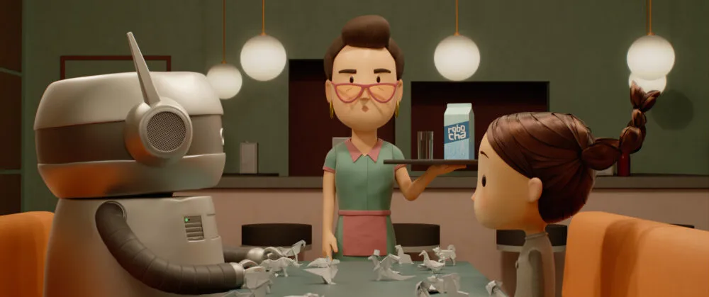 Based on acclaimed Canadian musician and DJ Kid Koala’s award-winning graphic novel of the same name, Space Cadet is a dialogue-free animated film that portrays the tender story of a young girl, Celeste, and the first-generation Guardianbot she loves. He is a protective robot programmed to safeguard the sweetest astronaut on this planet. When Celeste heads into space on her first solo mission, he is left behind, struggling with loneliness as he reflects on their shared memories. Space Cadet is a dialogue-free, musical animated film full of warmth, humor, and emotion. As Celeste embarks on an adventure in the vastness of space and faces unexpected dangers, she learns to find her way home with courage, resourcefulness, and love. An enchanting story about friendship, memories, and discovering your place in the universe.