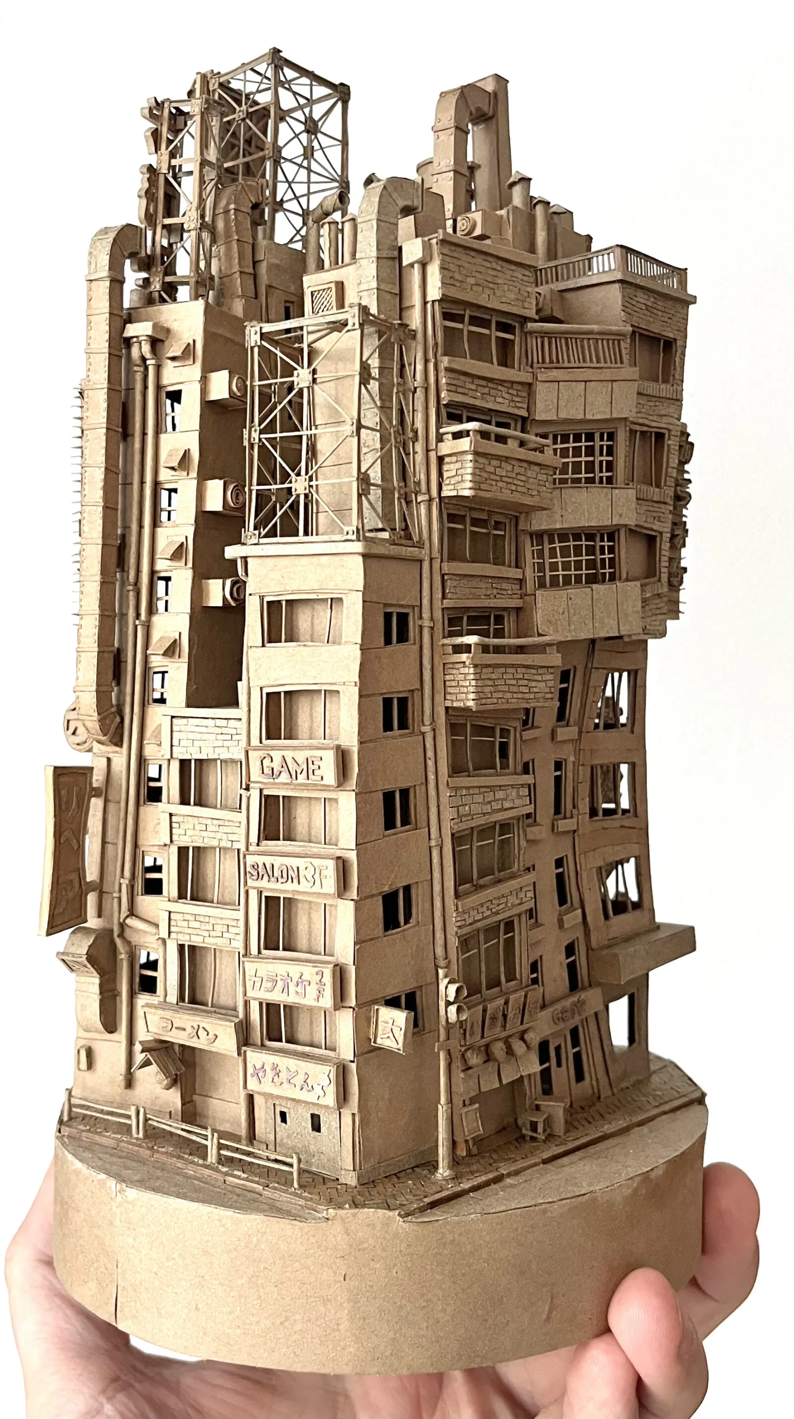 In 2022 Wijnand began experimenting with cardboard. “I uncovered the potential and versatility of cardboard. It offers boundless creative possibilities.” Wijnand expressed. Thus he embarked on crafting a series of miniature urban sculptures. The juxtaposition of cardboard’s raw and humble appearance with intricate detailing and precise construction results in a unique aesthetic.