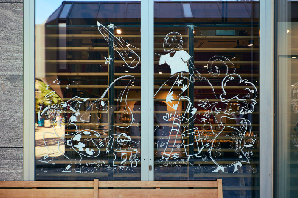 As part of our Windrawsroute, Illustrator Anouk van Esch is joining The Art Department for a live drawing session. Watch her work her magic on the windows of our festival venue: Klokgebouw.